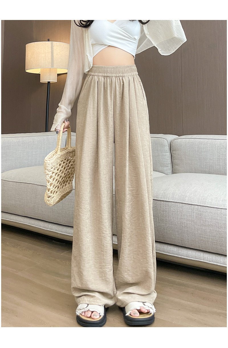 クリームムースヤマモト パンツ レディース 夏 カジュアル 多用途 ドレープ クリーム パンツ テクスチャード レイジー アイスシルク ワイドレッグパンツ